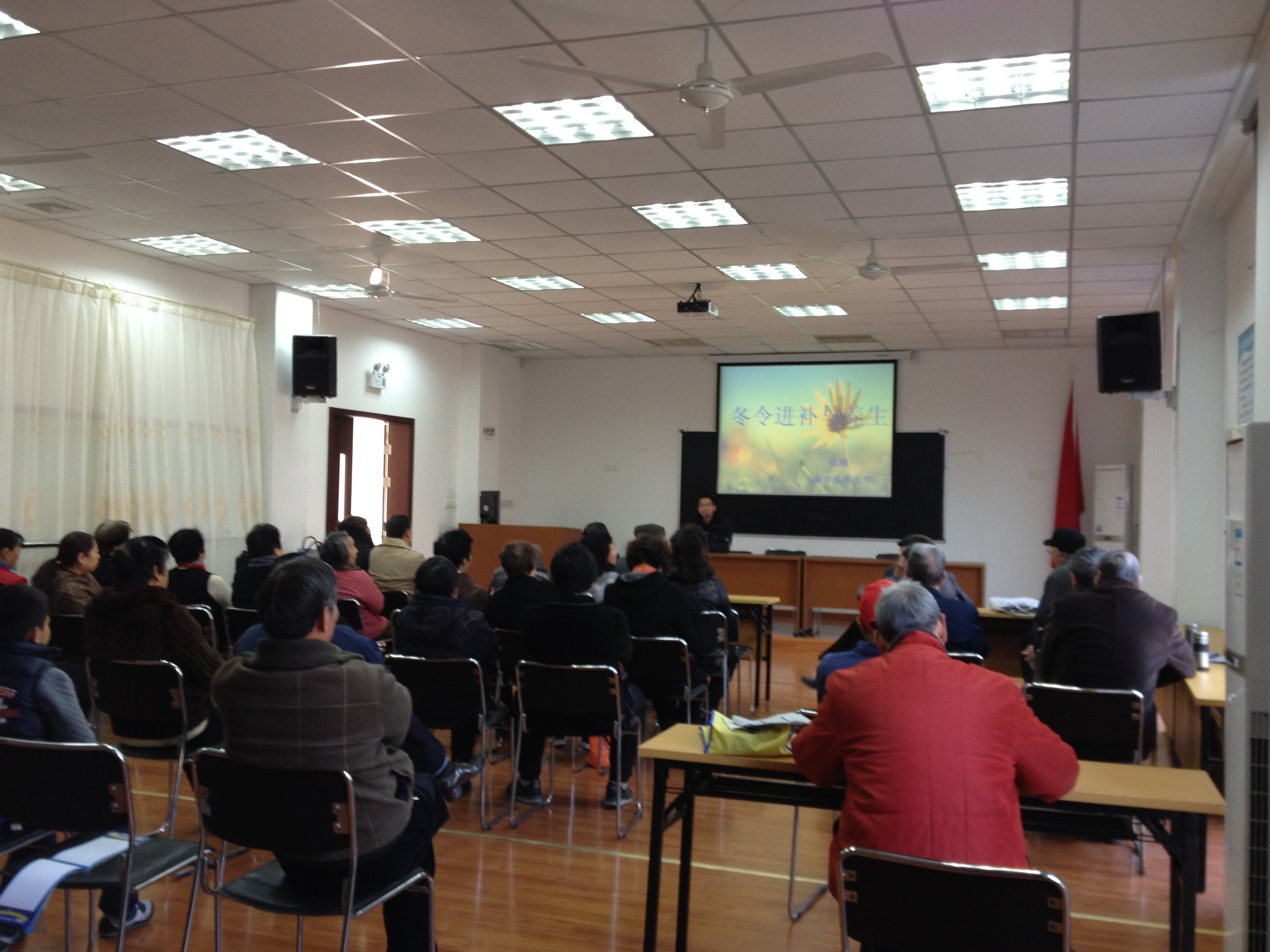 2013年11月30日上午,第四党支部宣传委员张潮同志利用周末休息时间,来到张江镇孙建路居委会,为社区三十多位多位居民举办了“冬令进补与养生”专题讲座,受到热烈欢迎。张潮老师围绕“为什么要冬令进补”、“什么样的人需要进补”、“如何进补”等问题娓娓道来,深入浅出,内容丰富,气氛活跃。课后,张潮老师围绕各种养生观念、习惯与居民开展了丰富的互动。讲座对于引导社区居民树立正确的养生观念具有积极意义。(邓海平)