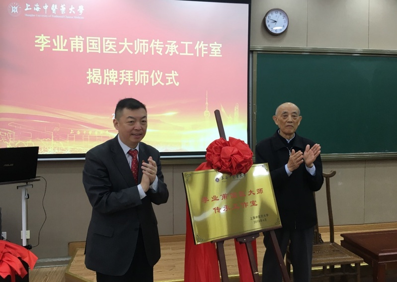 随后,胡鸿毅与李业甫共同为“李业甫国医大师传承工作室”揭牌。