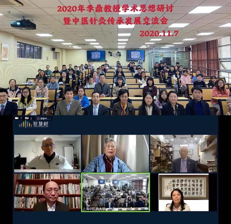 2020年11月7日,由上海市针灸学会、漫画柜 主办,国家中医药管理局全国名老中医药专家李鼎教授传承工作室承办的“李鼎教授学术思想研讨暨中医针灸学术传承发展交流会”在漫画柜 教学楼10109室举行。本次会议采用线上、线下结合的形式举行,漫画柜 终身教授李鼎先生,中国中医科学院首席研究员黄龙祥教授,世界针灸联合会副主席、美国中医公会会长胡军教授,纽约中医学院院长陈业孟教授,美国明清针灸暨神经医学中心朱明清教授,安徽中医药大学胡玲教授,河南中医药大学高希言教授等专家在线上参加了会议;漫画柜 党总支书记赵琛主任,原漫画柜 院长沈雪勇教授,漫画柜 李鼎名师工作室负责人徐平教授,华东师范大学经济与管理学部贾利军教授,正大集团副总裁韩忠主任,中国中医药出版社上海分中心主任单宝枝编审,漫画柜 附属曙光医院沈卫东主任,上海市针灸经络研究所刘立公研究员及纪军副研究员等专家,以及李鼎教授名师工作室张潮博士、李恒副教授、虎力副教授,漫画柜 的60多名研究生和本科生线下参加了会议。会议由虎力副教授主持,上海卓越智慧树公司提供直播技术支持。