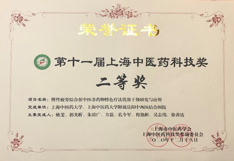 慢性疲劳综合征中医非药物特色疗法优效干预方案,项目运用中医非药物疗法解决了CFS的身心疲劳临床问题,开展中医传统功法理论溯源、技术规范和处方优化,运用fMRI技术阐释功法干预CFS的“外治内应”脑功能响应特征,促进成果转化及临床推广应用,推动推拿了学科发展。