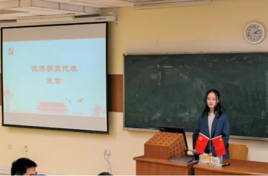 2019级中医学(5+3一体化针灸推拿英语方向)专业学生周叙作为优秀学员代表发言。她表示,当代大学生是国家的希望,是党的后继力量,应当以党员标准严格要求自己,学好理论,锻炼党性,学好专业,练好本领,守正创新,继承发展好中医药事业。