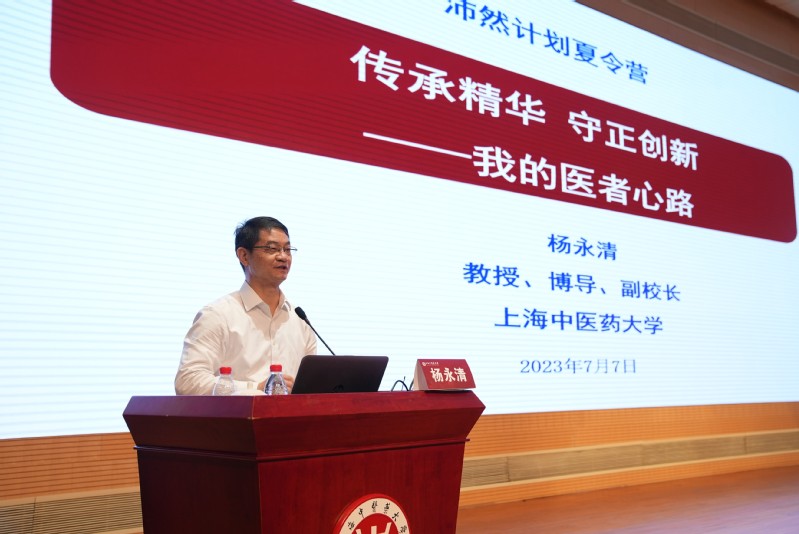 作为开营第一课,副校长杨永清教授深度阐释传承、精华、守正、创新4个关键词的寓意,以自己少年时期的学医经历和成长经历寄语营员“探索未知,发现不同,基于科学哲学,用现代科学技术,研究总结中国传统医学的精华”。他希望同学们充分发掘和利用上海这座城市所拥有的一切精神魅力、科技资源、文化品格,挖掘和发现祖国医药学的科学价值,传承创新发展好中医药事业。