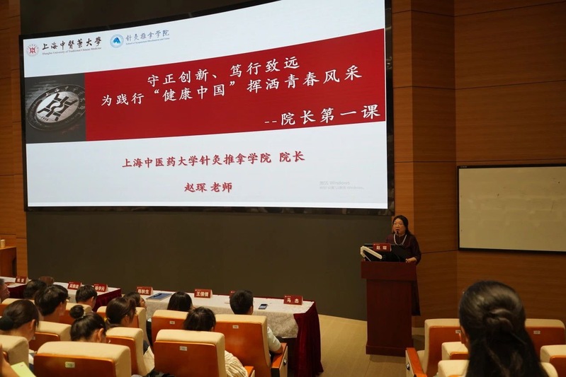 赵琛以“守正创新、笃行致远,为践行‘健康中国’挥洒青春风采”为题,为全体新生带来“院长第一课”,从学科建设、人才培养、教育教学、学生工作等方面介绍学院的历史与现况;希望同学们把握大好时光,提前规划、趁早谋划、笃行致远,以德智体美劳全面发展的优异成绩回报家庭和学校的培养;殷切期待全体新生成为守正创新、传承发展中医药事业的接班人,为践行“健康中国”战略,挥洒青春风采。