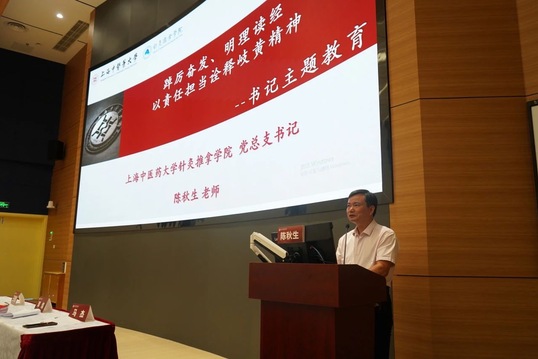 陈秋生以“踔厉奋发、明理读经——以责任担当诠释岐黄精神”为题,为本次见面会进行总结讲话。他勉励全体新生把握“明理、读经、练功”的六字箴言,求真理、悟道理、明事理,多读红色经典、精研中医经典,勤学专业内功、苦练中医功法。他希望全体新生在求学期间,志存高远,学习领悟马克思主义的世界观与方法论,学习好、把握好、运用好习近平新时代中国特色社会主义思想,以此作为学习和生活的明灯,做一个有信仰的新时代中医好青年;以名医、名师、大国工匠为榜样,全面学习、融会贯通各科知识,做一个有学识的新时代中医好青年;始终牢记以人民为中心,凝心静气、不骄不躁地练就为人民服务的本领,守正创新、传承发展好中医药事业,做一个有担当的新时代中医好青年。